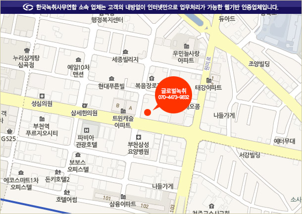 글로벌녹취사무소 부천점은 코로나19(COVID-19) 등 감염병 예방 및 확산방지를 위한 정부시책에 적극 협조하는 한편 업무의 효율성 제고를 위하여 고객의 내방상담을 받지 않습니다.